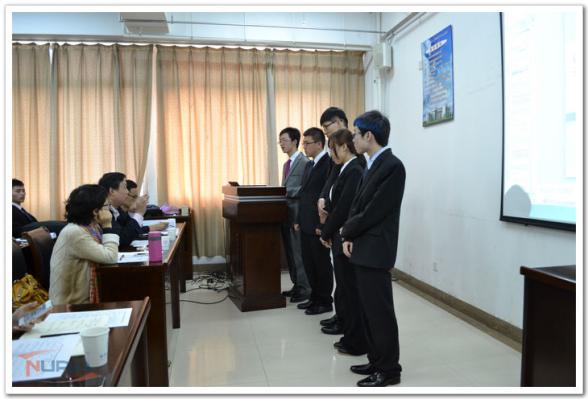 各团队负责人结合PPT进行五分钟的答辩展示,各有侧重地展示了项目的背景和意义、内容和方法、研究过程与技术路线、结果与分析、特色创新及体会与展望等内容。其中11级学生穆晓伟负责的“双模板法制备介孔-大孔碳MnO2及其氧还原催化性能”和10级学生周燕负责的“高能量密度V2O5基钠离子电容器电极材料的研究”等项目受到评委老师的一致好评。
