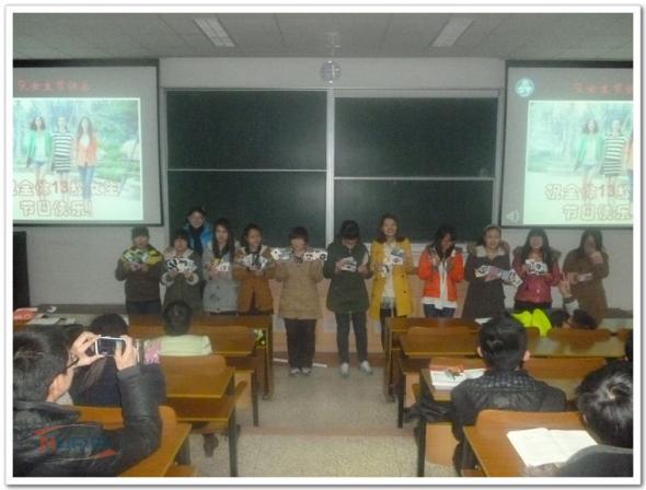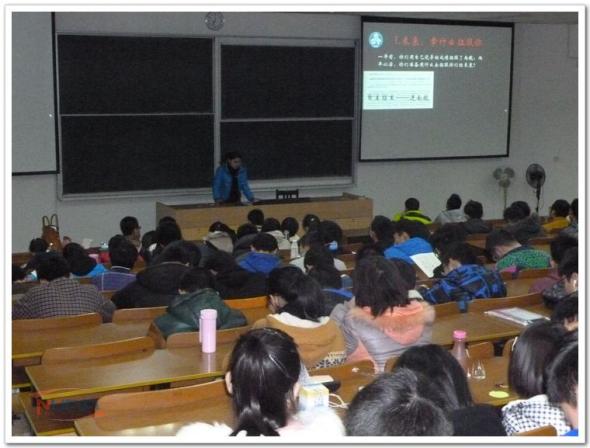 的同学们一年前征服了南航,一年后拿什么征服未来的思考,并解析上学期期末成绩,通过与12级和南医学生成绩对比的数据分析,让学生从思想上意识到学习的重要性,提升学习主动性。通过分享身边的故事,让学生们调整状态,永不言弃。通过新闻漫谈,引导学生们关心时事,关注“两会”,做到既读“圣贤书”也闻“窗外事”。然后,权璐对学生素质能力培养方案进行了更加深层次的诠释,以嫦娥三号总工程师孙泽州的事例诠释表达能力的重要性,鼓励学生在大学里积极锻炼自己,努力向着“高素质公民和未来开拓者”的目标奋斗。最后,以3月7日女生节为契机,权璐呼吁男生关心女生,帮助女生。由13级团总支牵头,各班男生配合制作以女生照片为主题的明信片作为女生节礼物。并让女生将自己的心愿便利贴贴在许愿墙上,由男生完成。