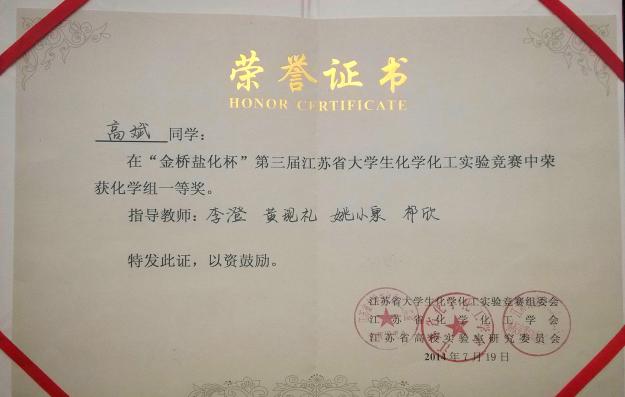 江苏省大学生化学化工实验竞赛以“促进江苏高校化学化工实验教学改革,提高本科化学化工教育水平与人才培养质量”为宗旨,每两年举办一届,旨在加强学生的化学、化工实验的基础理论、基础知识、基础技能,培养学生的创新意识、创新能力和创新精神。第三届大赛于2014年7月在南京开赛。江苏省普通高等学校共计有44个化学组和36个化工组共计240名选手实际参赛。在包括南大、东南大学、南师大、南工大、苏大等学校的44个化学组竞赛中,私密直播 应用化学专业参赛的三名学子全部获奖。