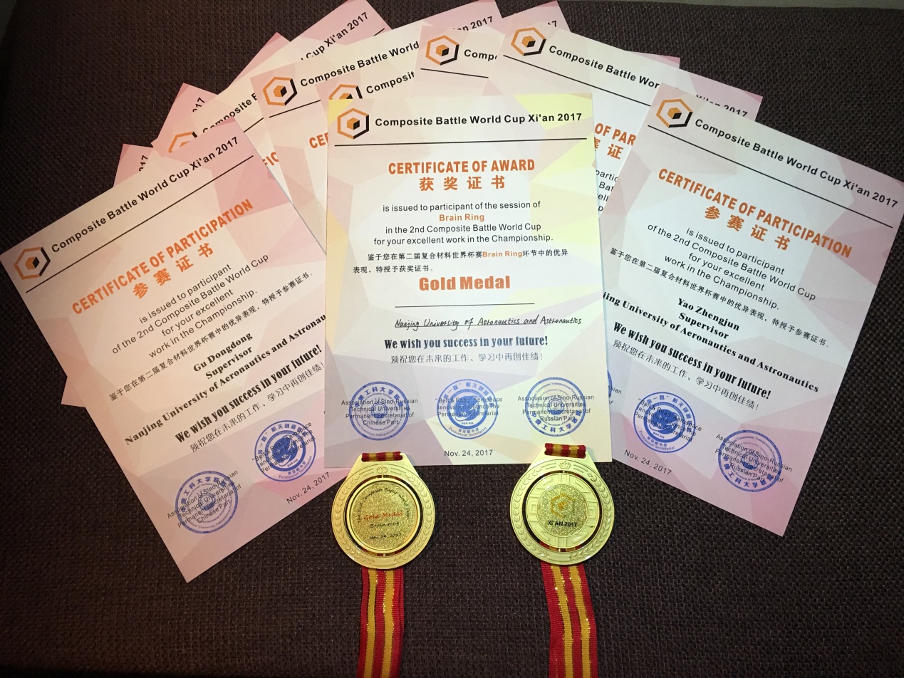 2017年11月20-24日,第二届复合材料世界杯赛开幕式在西北工业大学长安校区翱翔体育馆举行。由我校国际合作交流处组织,私密直播 2016、2014级研究生以及指导老师姚正军教授、顾冬冬教授和周金堂老师组成的NUAA.VARIer参赛团队参加了比赛并获得优异成绩。
