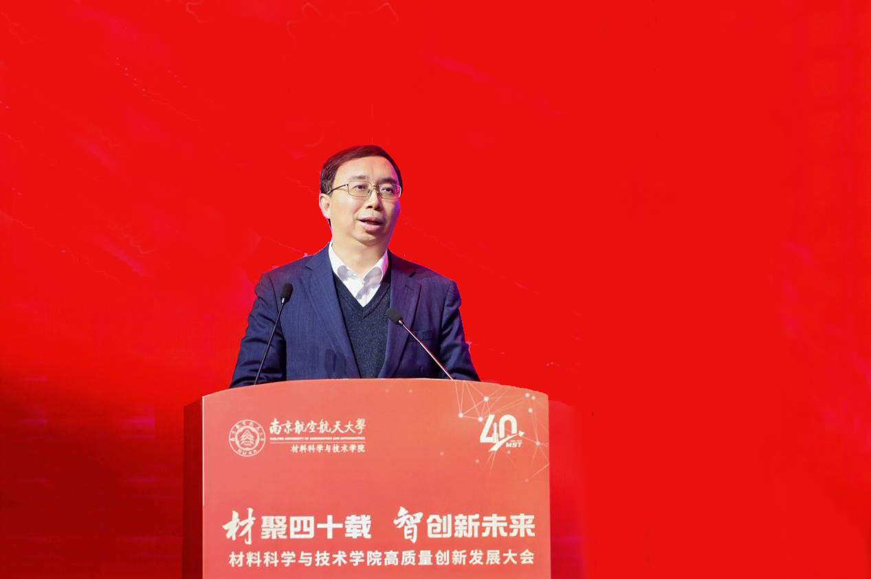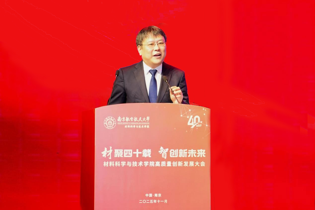 院长顾冬冬作学院发展报告,就学院四十年来的建设情况、发展成效以及未来展望进行汇报。砥砺深耕、守正创新,几代南航材料人始终坚持服务国家战略,围绕空天材料、成形加工、表面工程、能量存储、核技术应用等开展前沿研究,材料科学学科进入ESI全球前1‰,综合实力稳步提升。未来,学院将锚定学校2035年发展目标,聚焦“十年行动计划”,持续为航空航天、国防科技和产业创新贡献材料力量。