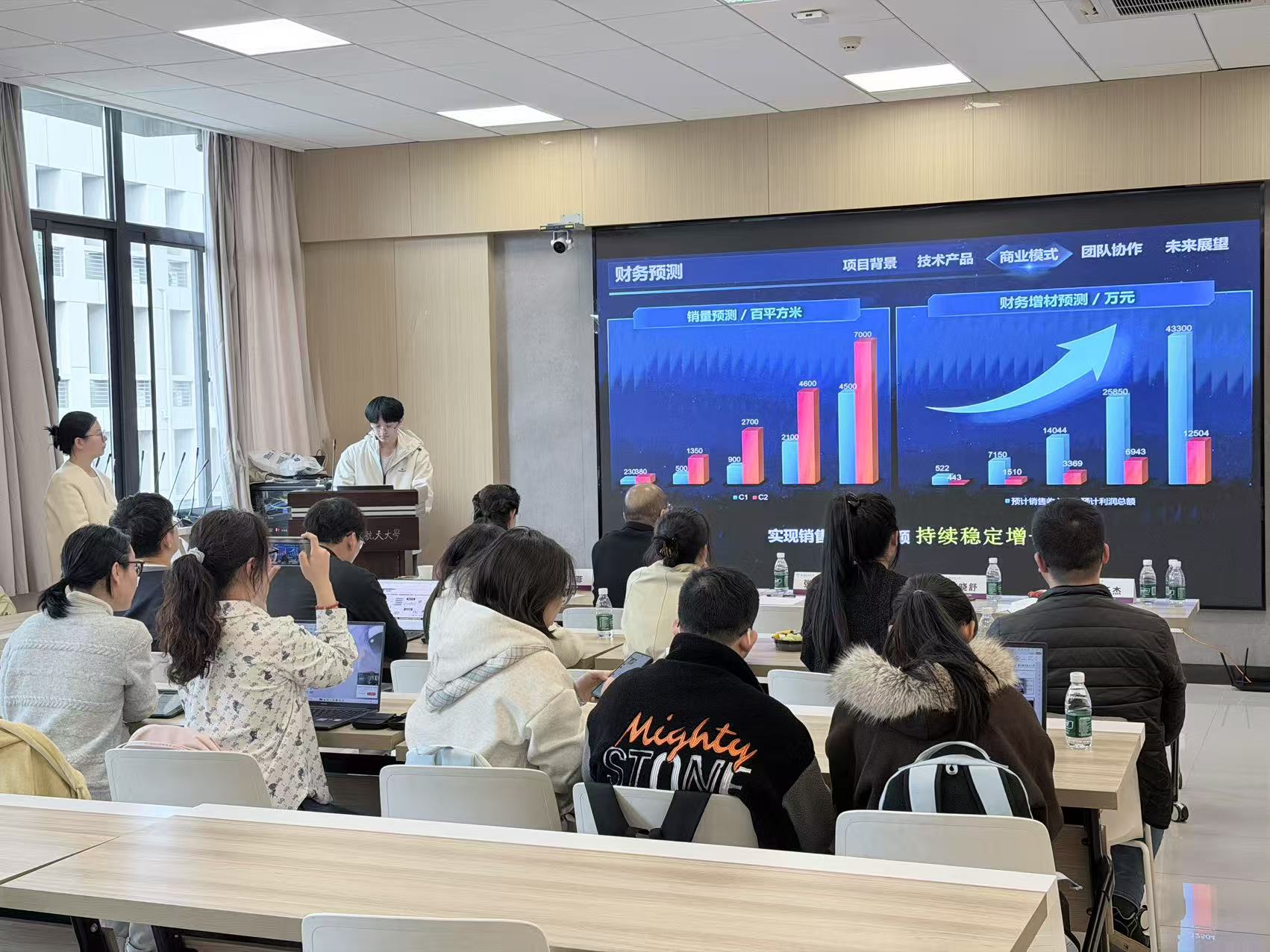 在项目辅导环节,学院参赛团队依次进行路演汇报,围绕项目背景、核心技术、应用场景及创新亮点等内容进行了系统展示。姜鹏飞结合评审标准与行业经验,从项目整体逻辑构建、技术创新表达、应用场景拓展、商业模式完善以及路演展示效果等多个维度进行了逐一点评。他不仅针对项目中存在的共性问题提出了具有可操作性的优化建议,还从评委视角出发,指导团队在PPT呈现、时间把控与答辩表达等方面进一步提升专业化水平,帮助项目实现从“有亮点”向“有竞争力”的跃升。