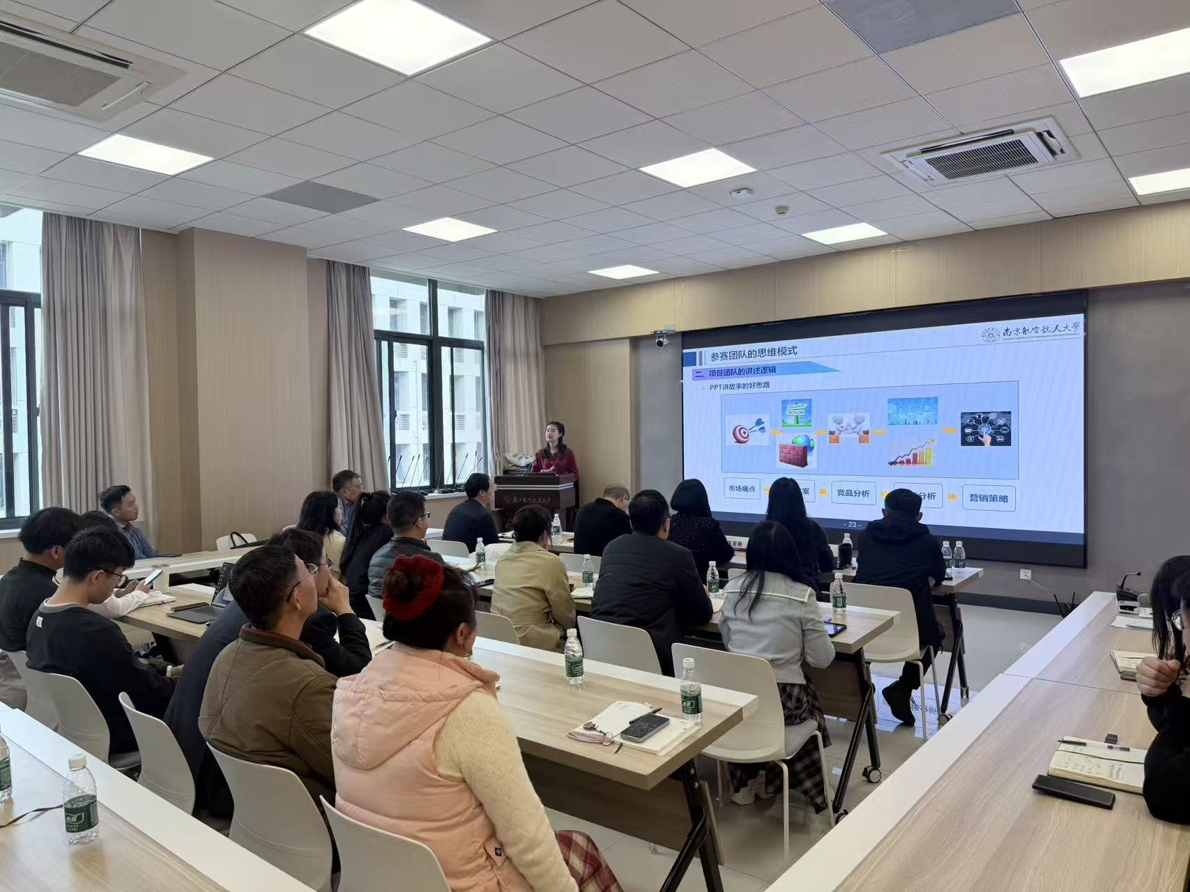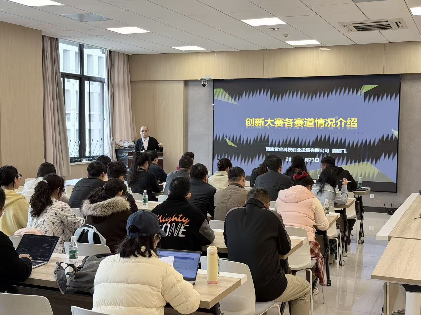 姜鹏飞立足多年高校科技成果转化与创新创业投资实践经验,从赛事评审逻辑与产业视角出发,对中国国际大学生创新大赛进行了深入解读。他系统梳理了大赛赛道设置与组别划分,重点分析了不同赛道的评审导向与核心评价指标,详细讲解了参赛项目在技术创新性、商业可行性与社会价值等方面的关键要求。同时,他结合典型案例,深入阐释了优质项目的挖掘路径与培育思路,强调项目应立足学科优势与产业需求,突出“真问题、真技术、真应用”,在技术逻辑与商业逻辑之间实现有机统一,切实提升项目竞争力与落地潜力。