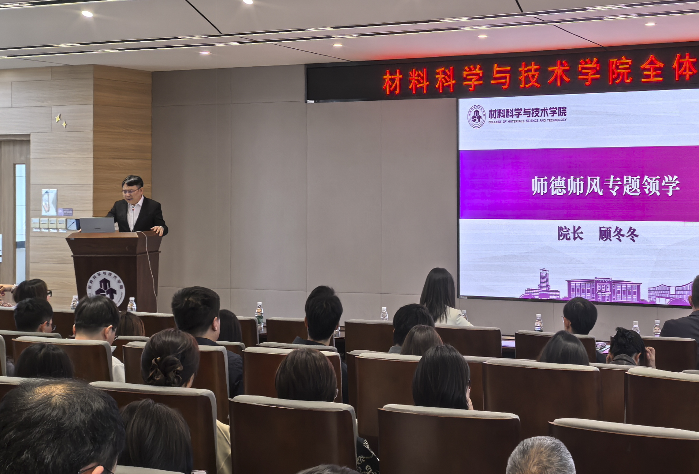 师德师风是评价教师队伍素质的第一标准,顾冬冬围绕师德师风建设开展专题领学,带领全体教职工深入学习习近平总书记关于教师队伍建设的重要论述,解读了学校相关制度文件。他强调,全体教职工要大力弘扬教育家精神和科学家精神,严格践行南航教师行为规范,做到基本要求,争做达到中级要求,矢志追求高级要求,努力做受人敬仰的“大先生”,以高尚师德涵养优良师风学风。